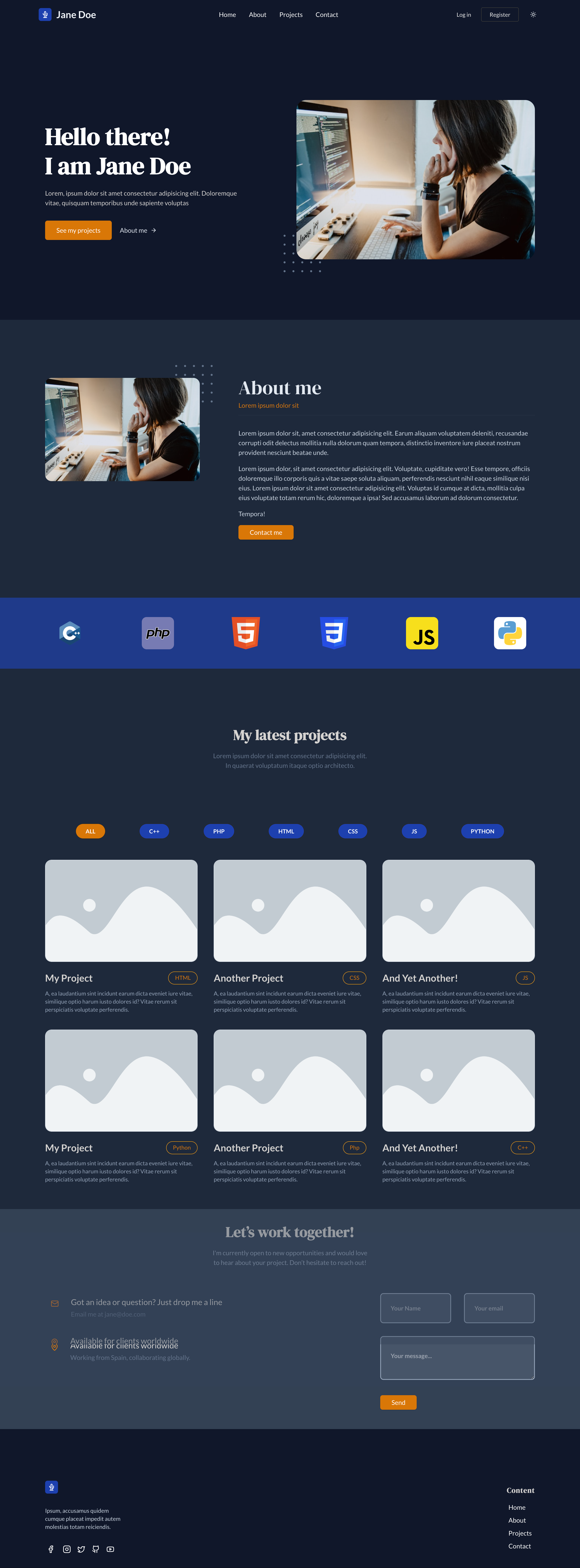 - Dynamic Content: Portfolio sections such as About Me, Projects, Skills, and Contact